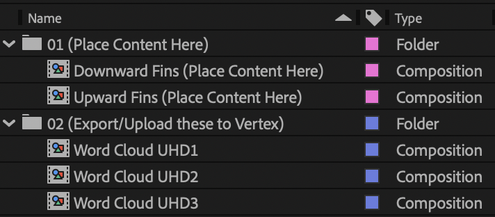 ← User puts content in Pre-Made compositions inside After Effects (01 Folder); This is what the Pre-Made comp looks like ↓